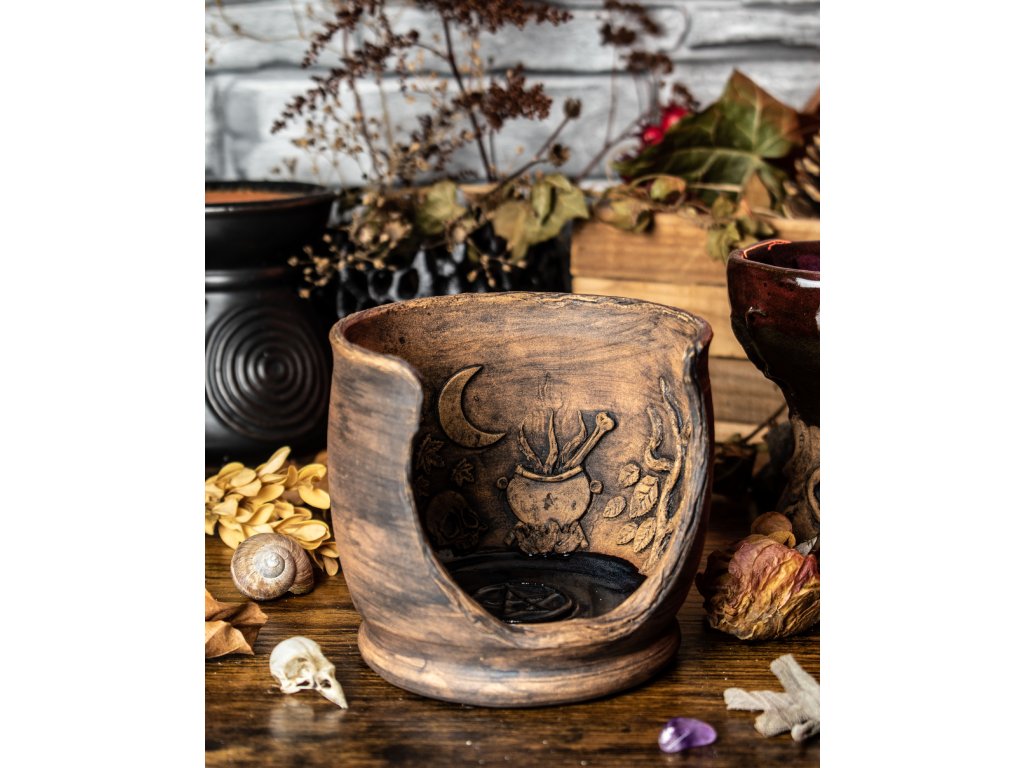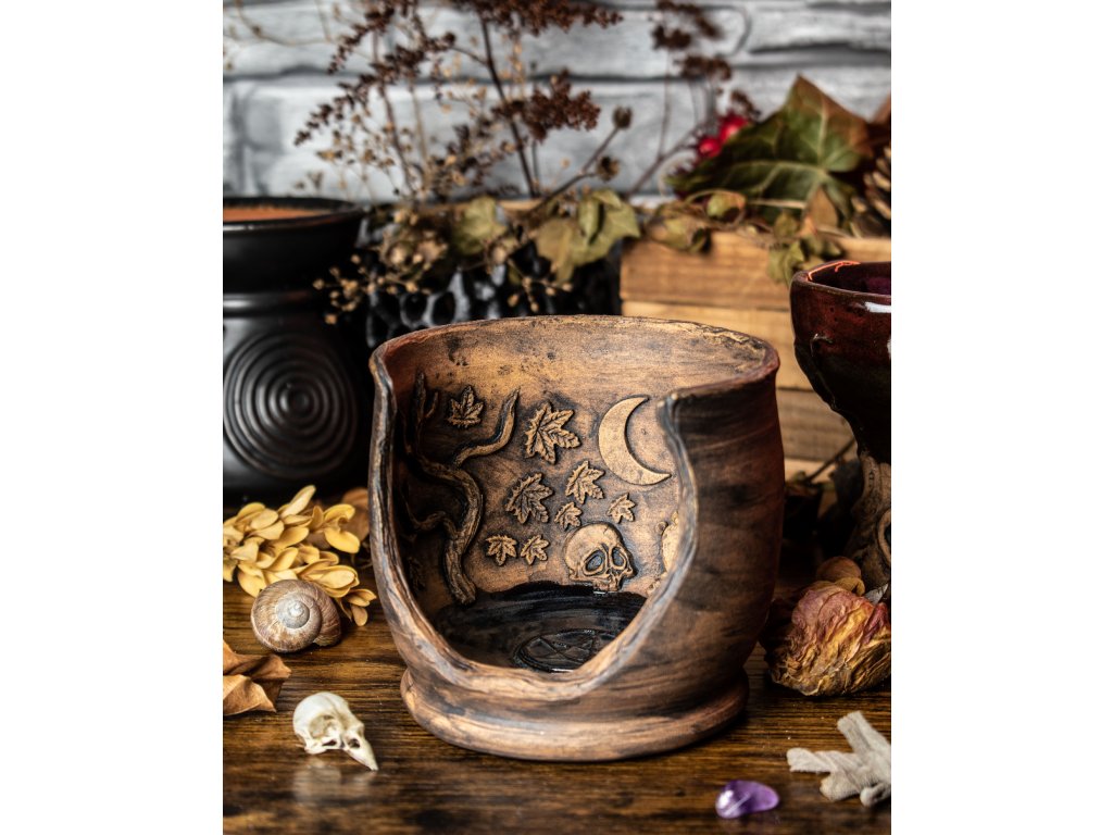 Ručně modelovaný keramický oltář vznikl v mé dílně na okraji lesa, kde se setkává starobylé řemeslo s magií přírody. Každý reliéf, každá větev a list nesou v sobě energii místa, kde se zrodily.