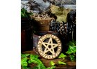 Kameninový svícen s kapkou magie jsem vytočila na hrnčířském kruhu, vyzdobila kouzelnými přírodními motivy, vypálila, naglazovala a podruhé vypálila na vysokou teplotu.