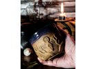 Kameninový kalíšek s kapkou magie jsem vymodelovala v ruce, vyzdobila kouzelnými přírodními motivy, vypálila, naglazovala a podruhé vypálila na vysokou teplotu.