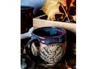 Kameninový kalíšek s kapkou magie jsem vytočila na hrnčířském kruhu, vyzdobila kouzelnými přírodními motivy, vypálila, naglazovala a podruhé vypálila na vysokou teplotu.